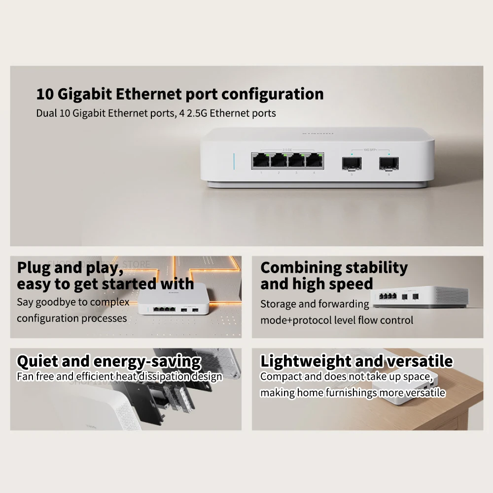 10G Ethernet Switch 4×2.5G+2×10GMbps Mini Network Switch