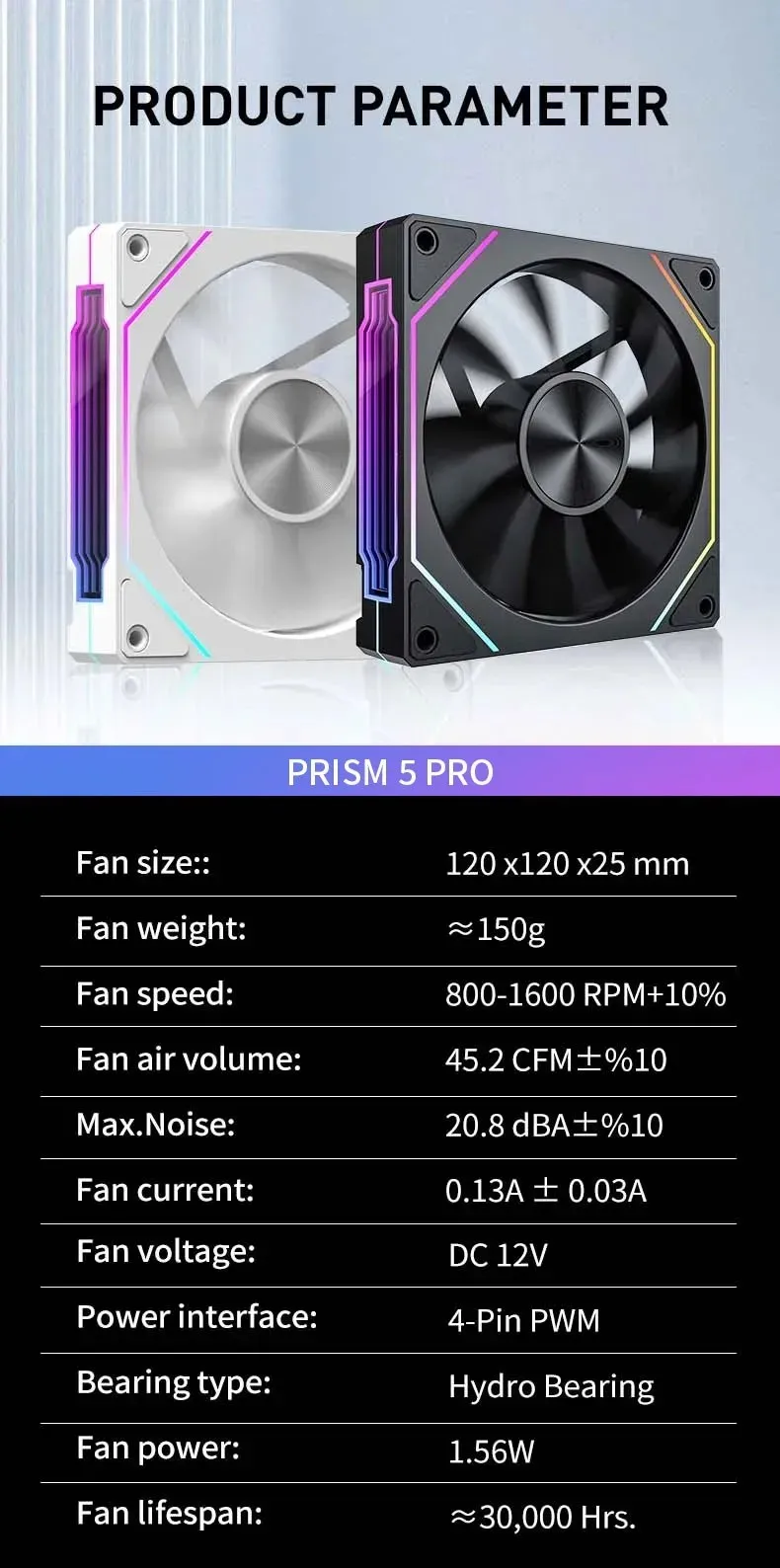 Prism 5 pro 120mm RGB Fan ARGB PC Case 4PIN PWM 5V-3PIN CPU Water Cooler Gaming PC Cooling Kit RGB Fans