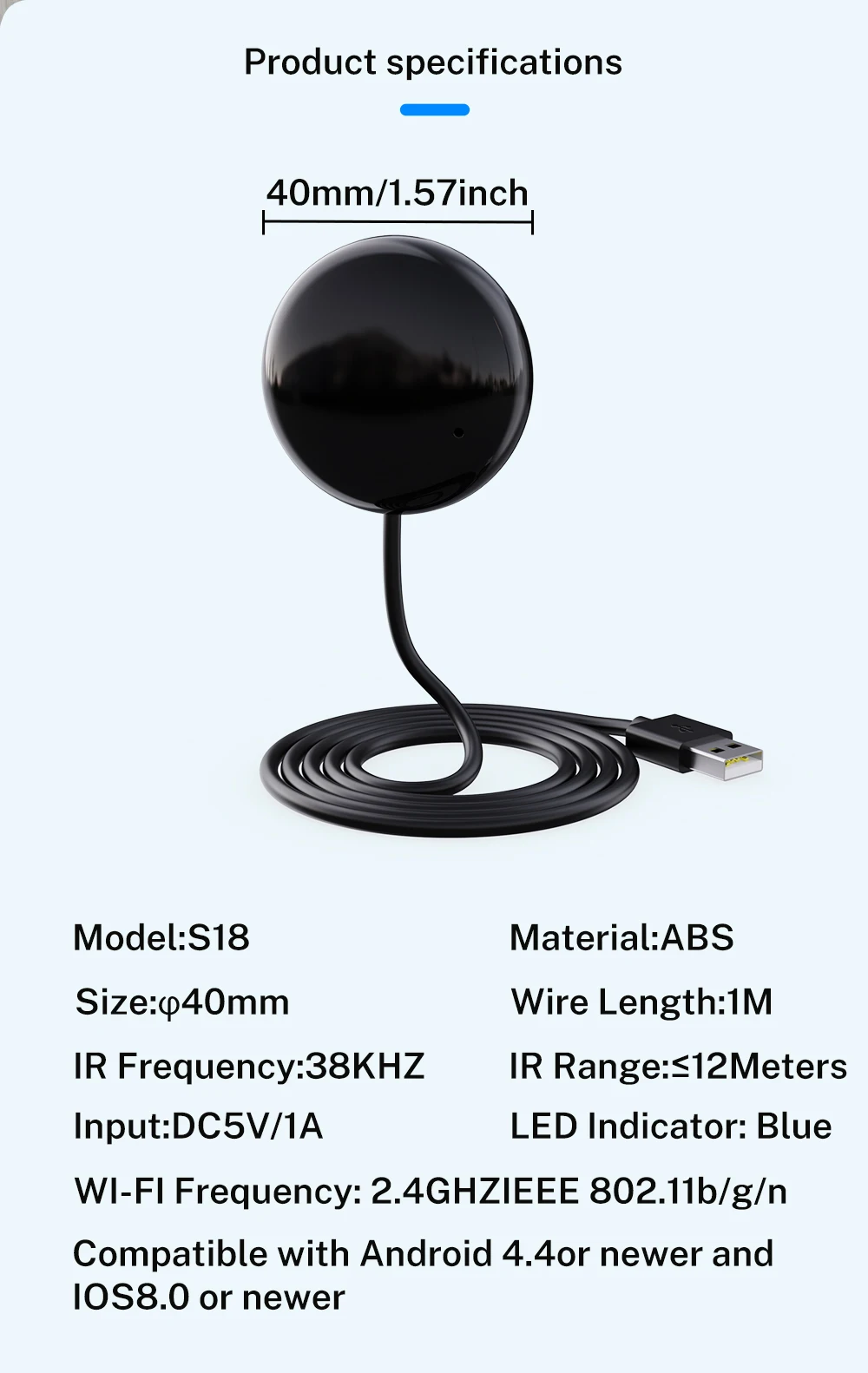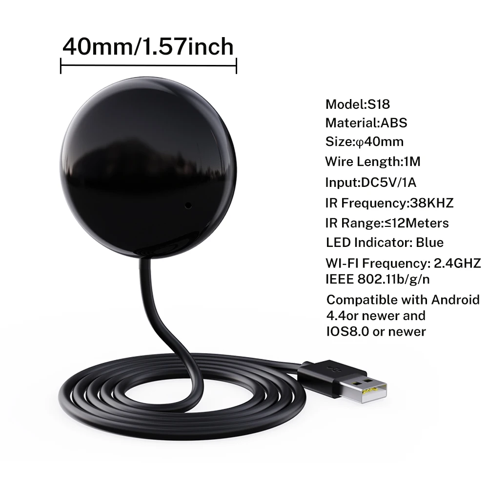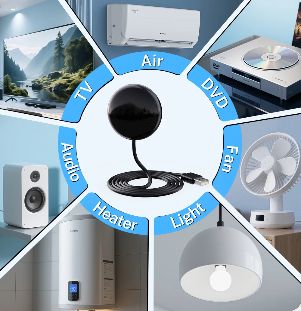 A: This is an intelligent replacement product for the original infrared remote control. It can help you control the infrared remote control and household appliances at home. You can control infrared household appliances in a room using a smartphone, and you can share it with your family. It has a 99% infrared control code library and can control 99% of the world’s infrared remote control devices. You can use it as a replacement when the original remote control is lost or damaged, or when you need to remotely control your device.